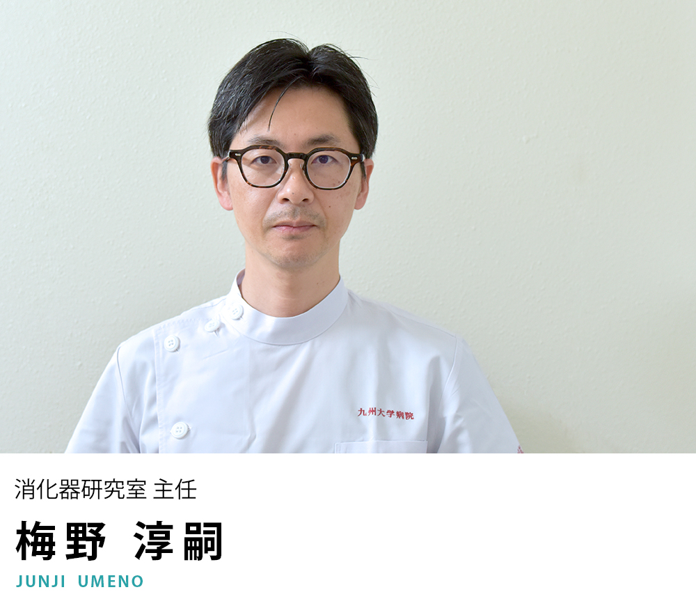 昭和29年に岡部治弥先生が設立された消化器研究室は、「日々の臨床で経験した症例から学ぶ」、「臨床から生じた問題点を研究へと結びつけていく」ことをモットーに研究をしています。患者さんの診療に丁寧に携わることにより浮かんだ疑問について、消化管癌、悪性リンパ腫、消化管ポリポーシス、クローン病や潰瘍性大腸炎などの炎症性腸疾患の病態解明や新規治療法などの研究成果を挙げてきました。現在も九州大学の他分野や全国の大学と連携して多くの臨床研究を行っています。網羅的な遺伝子解析、分子生物学的解析、腸内細菌のメタゲノム解析、AIによる画像解析、といった手法も取り入れ、現在の医療で解決できない疾患の解明と新規治療を模索しています。